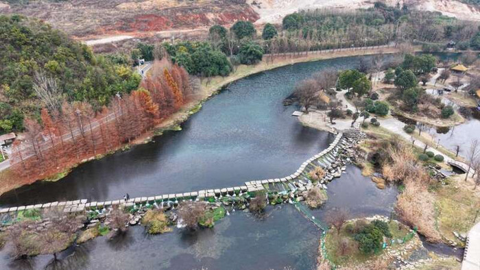 泄漏的溪流转折穿过滩涂,反照着岸边树影。水声潺潺,两岸红枫层林尽染,浅处可见水底浑圆的卵石。沿步说念而行,水声轻响,时常传来阵阵言语声。走得累了,便在河滩边的木凳上稍坐,静静赏玩水岸叮嘱处。这么丰富的生态为花溪带来了另一种活力,避暑旅居、湿地悠闲、文化体验等千般度假生存场景,让这里不仅是一派生态保护区,也成为一处可踱步、可千里浸、可栖息的悠闲经营地。