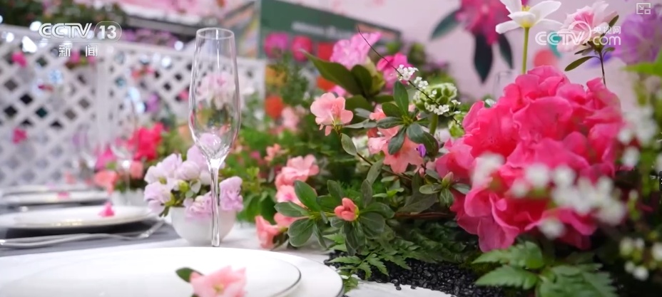 这个餐桌并不是在一家餐厅,而是在北京花草交往中心的一个花草展台上。这些花儿是来自2000多公里外的贵州峻岭杜鹃。往时咱们看到的峻岭杜鹃频频是在花盆里八成花坛里,现时以插花和桌花的形势,成为餐台上统共亮丽的景况。