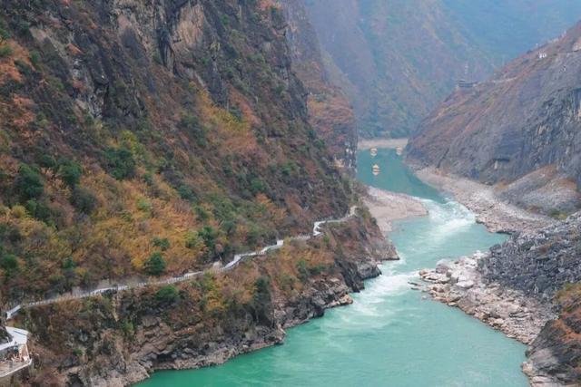 虎跳峡,名不虚传的万里长江第一大峡谷,横穿哈巴雪山与玉龙雪山之间。因猛虎借江心石跃江的传闻而得名,光听名字便觉声威不凡,令东谈主心生敬畏。