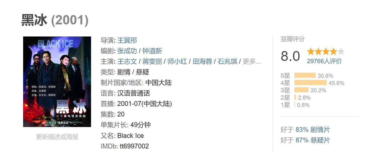 况且就算是《黑冰》在豆瓣中也只拿到8.0分,与其他赛谈9+的经典“分数线”来说,差距仍是差的太多。
