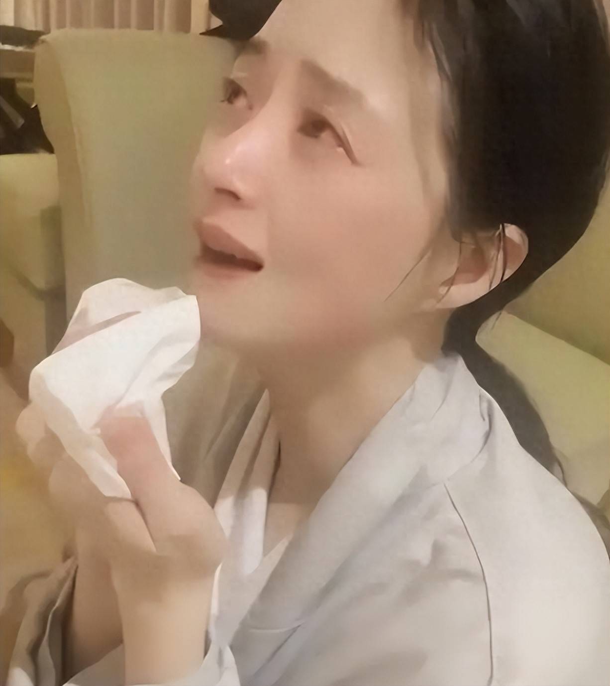 镜头里的她瘦得颧骨高耸,鼻头通红,一边与抽泣一边用纸巾按着眼角。
