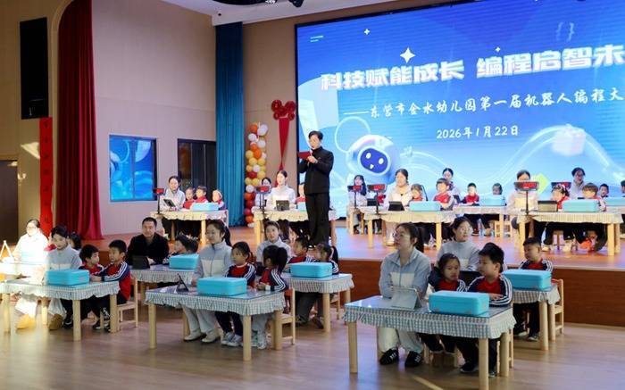 1月21日至22日,东营市金水幼儿园收效举办首届机器东说念主编程大赛。本次大赛以“科技赋能成长 编程启智将来”为主题,旨在激励幼儿转变潜能,鼓励科技西席在学前阶段的普及与久了。全园500余名幼儿参与其中,在合营与试验中体验科技的魔力。