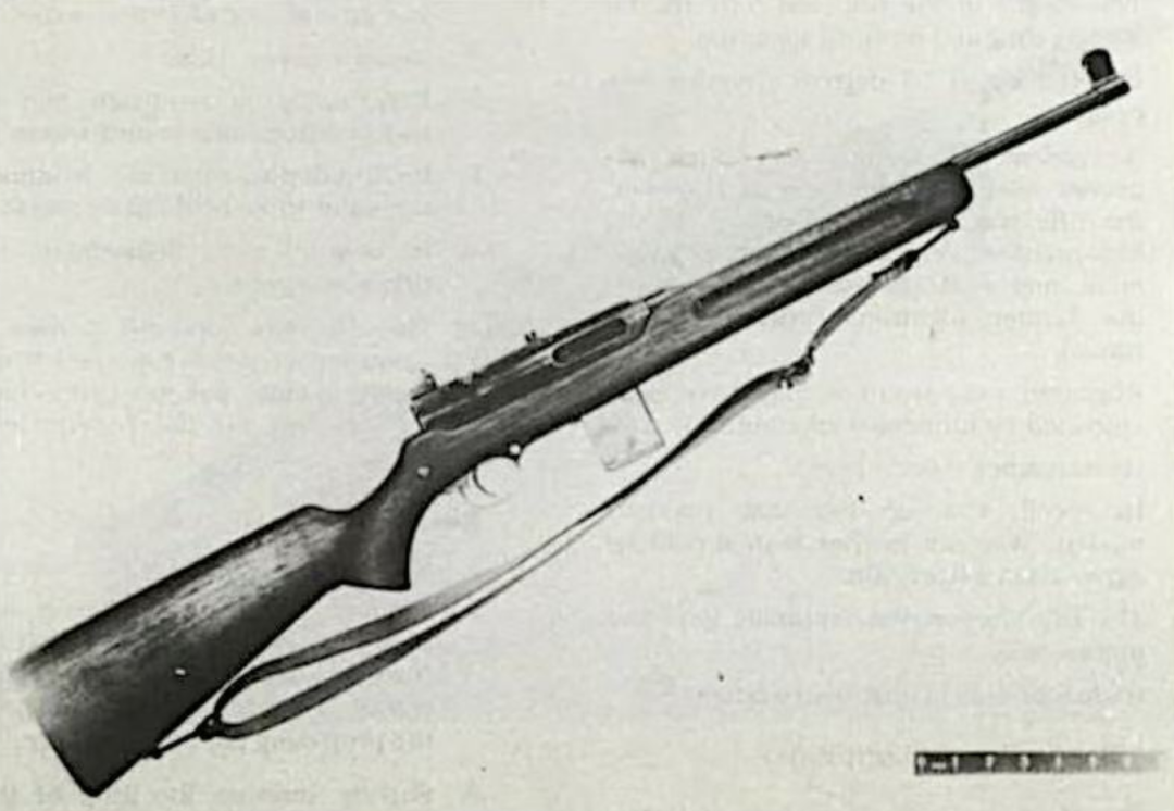对此汤姆森公司作念了两手准备,其一是,他们按照好意思国陆军轻型自保武器的竞标尺度设想了一个接受全长木托,管状机匣的.30口径卡宾枪,这枪长这样: