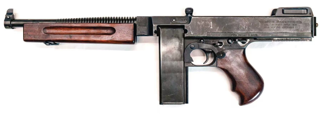 用M1928A1改装的.30口径汤姆森冲锋枪,枪托被拿掉了。