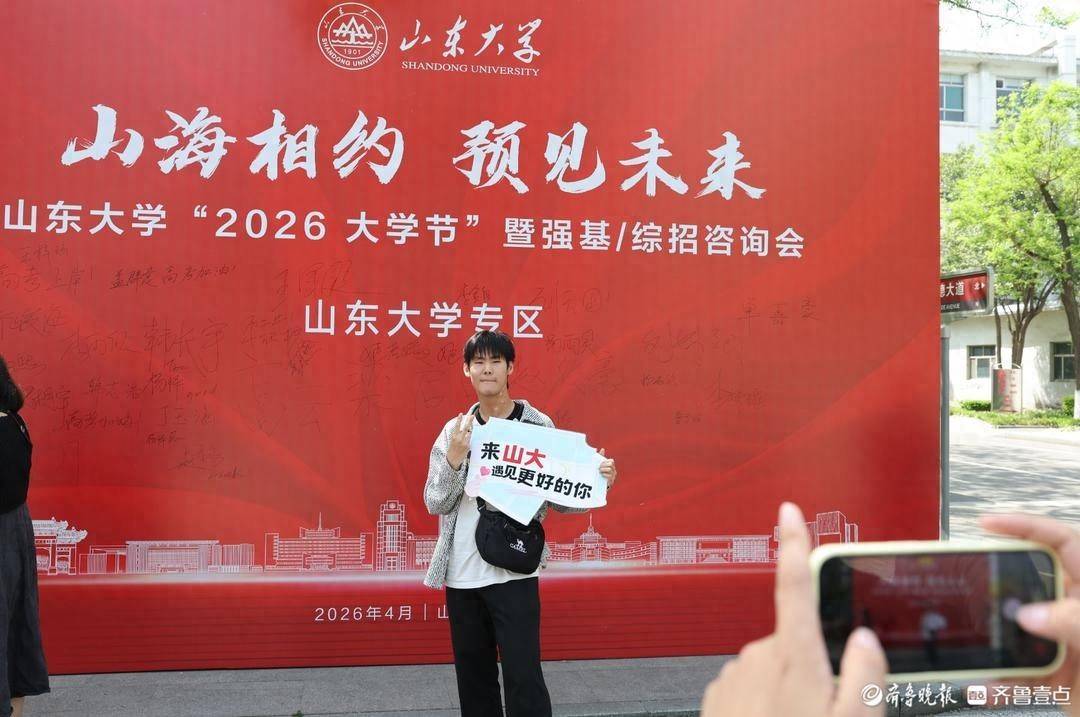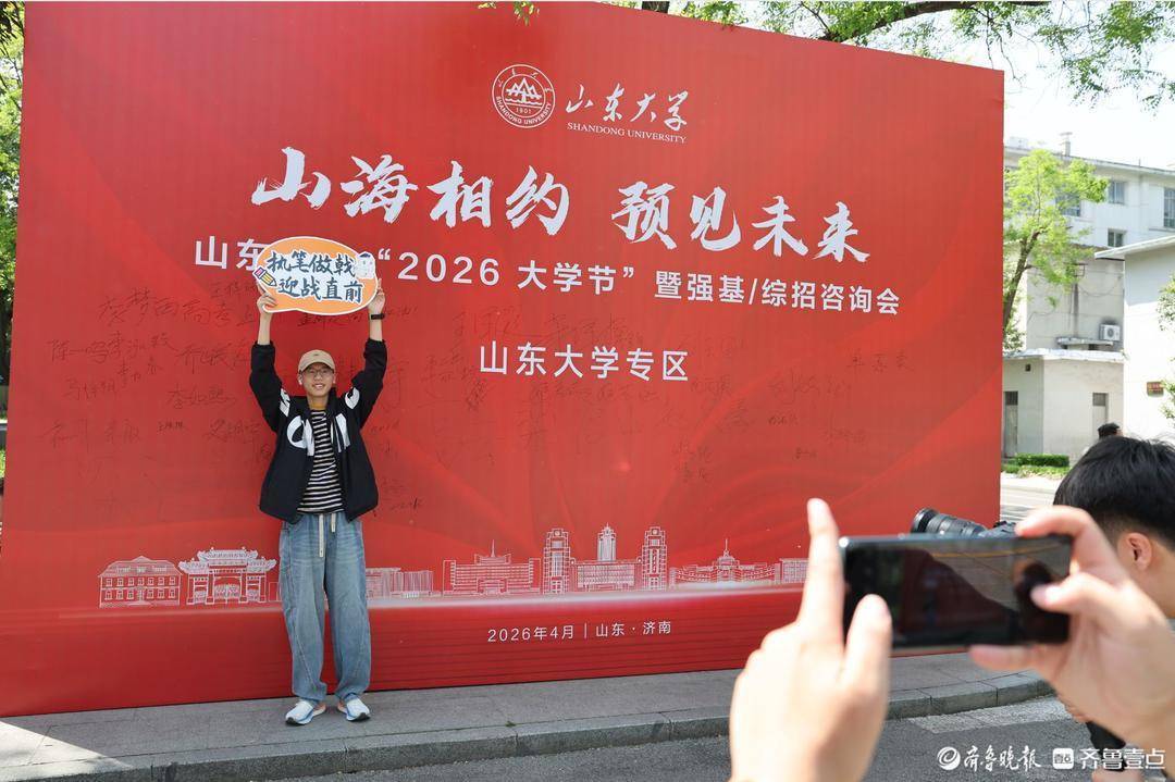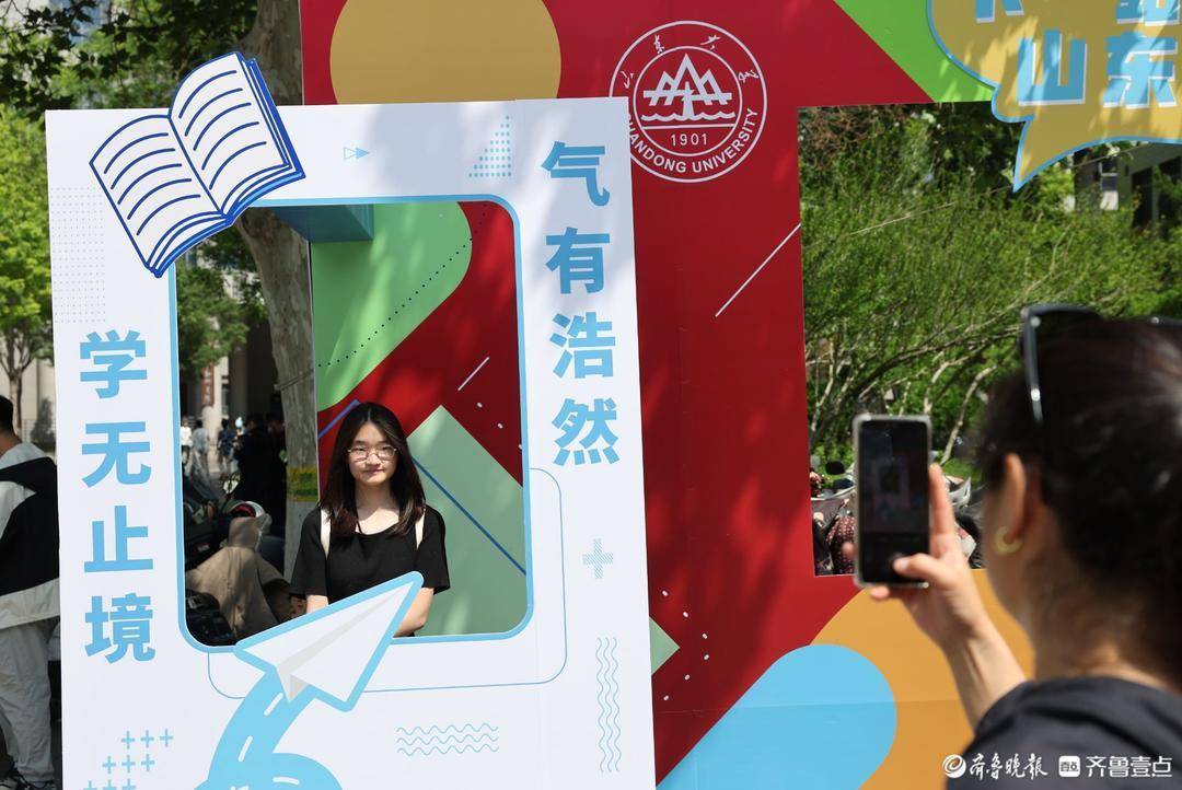 校园内相配建造了多处主题打卡点,前来商榷的考生纷繁在打卡点拍照迷恋。镜头前开云kaiyun体育,他们许下心愿,期待将来能考入山大,与打卡点的合影承载着对理思学府的好意思好憧憬,也成为这个春天最荒芜的芳华图章。