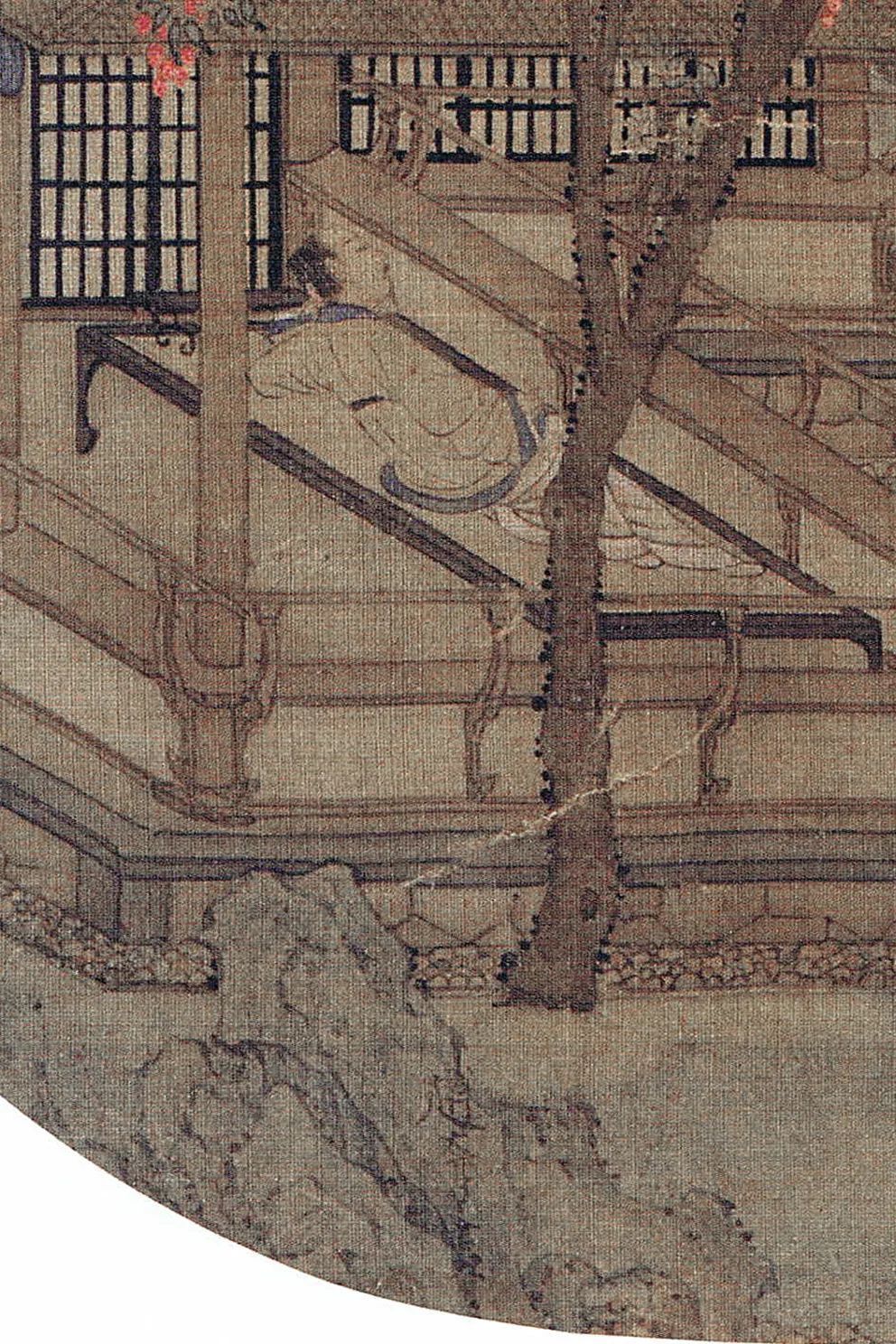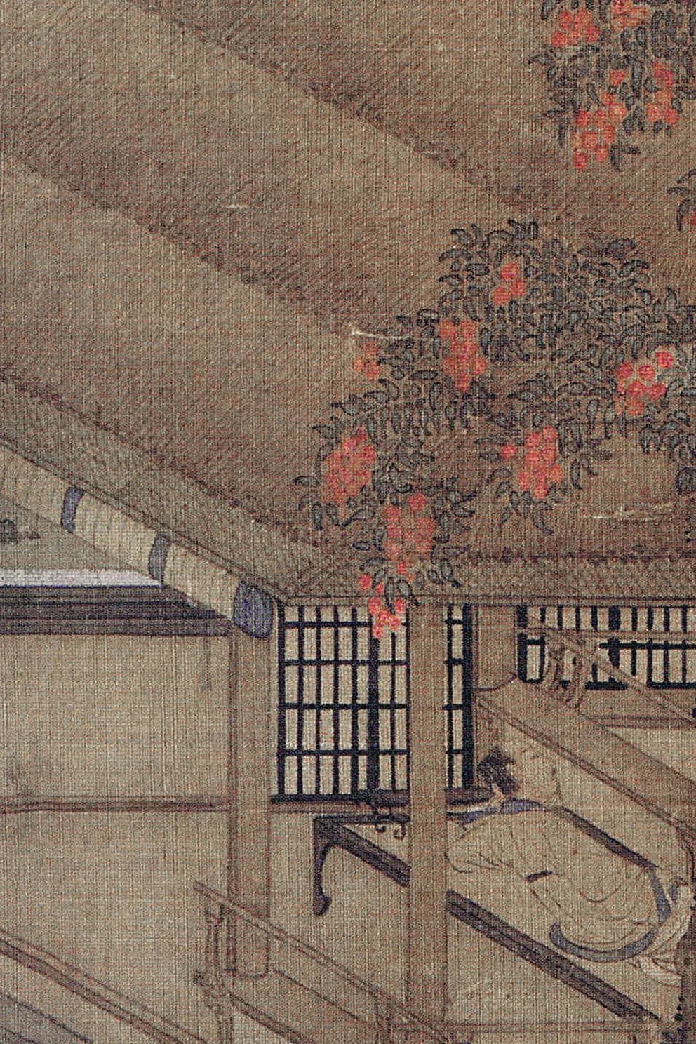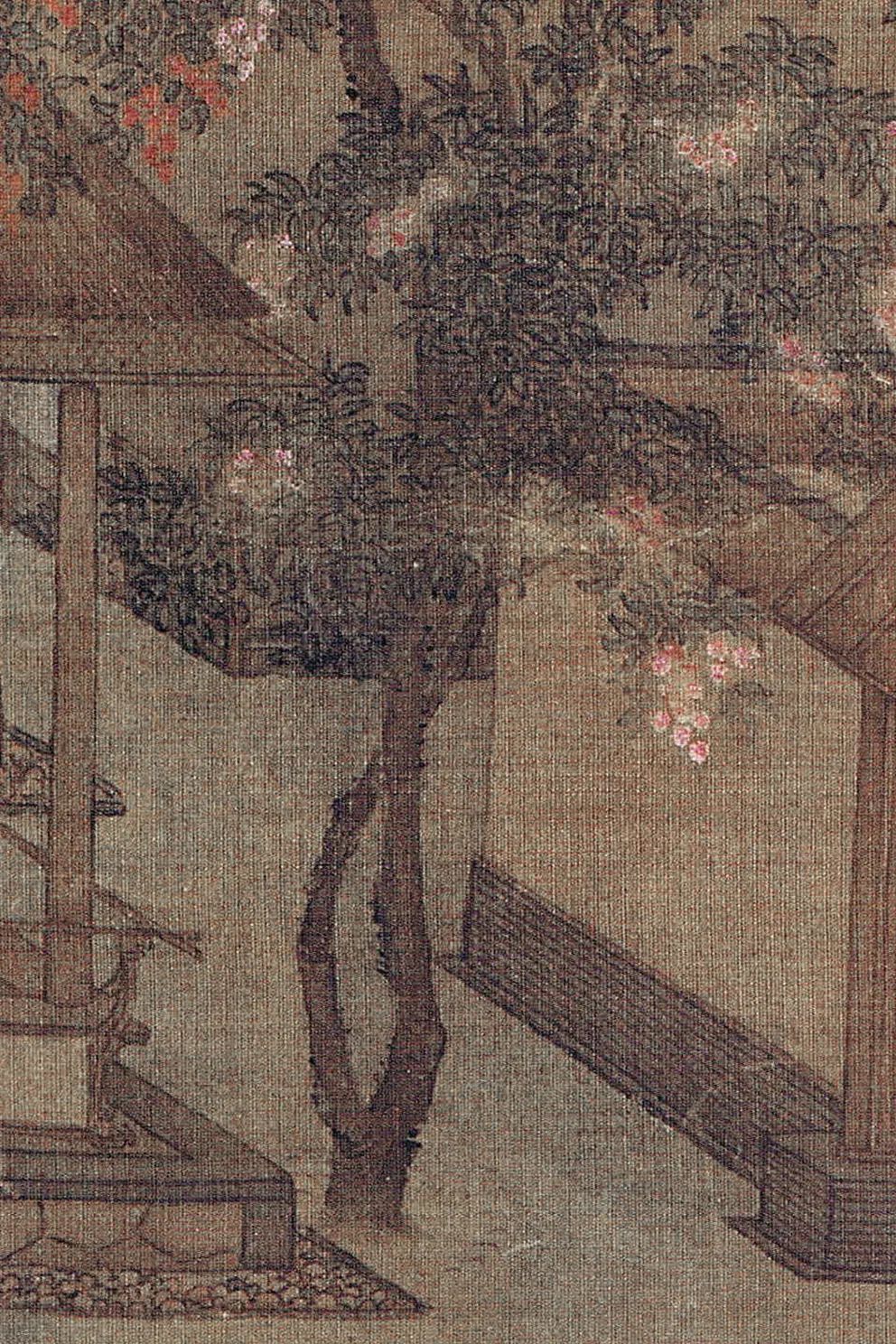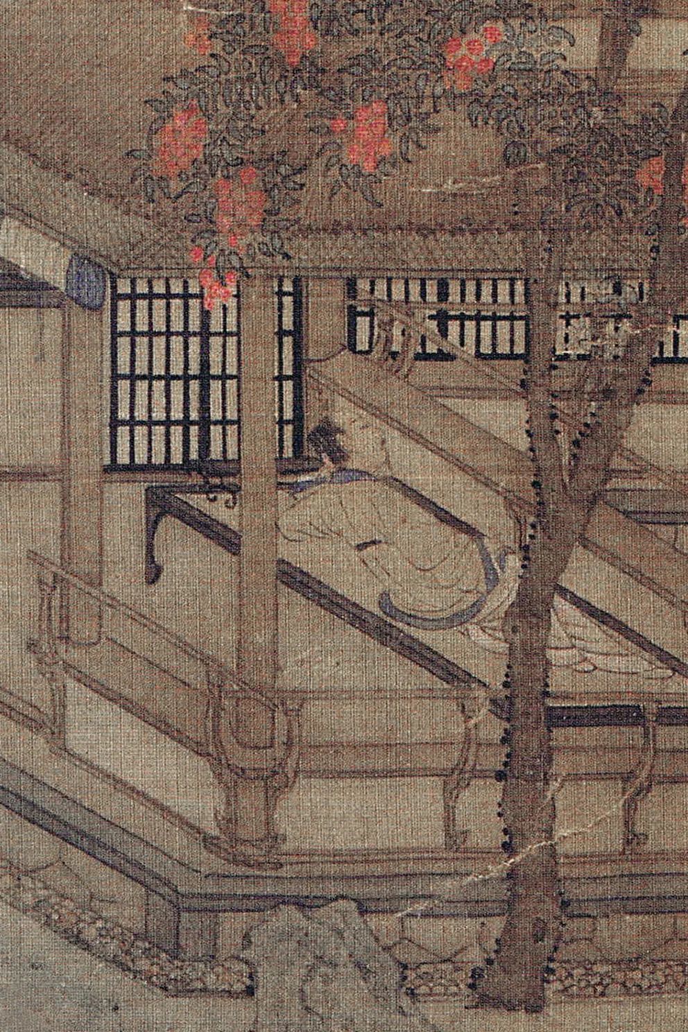 紫薇花的蕃昌与玲珑石的小巧,组成南宋早期“阔绰目的”的视觉标识。紫薇当作宫廷花草的民间化训导,与玲珑石从园林奇石到案头清玩的鬈曲,映射着临安城“瓦子妓院”中焕发的空想分娩。画中东说念主物虽卧于凉榻,但其视野穿透花树望向远处,这种“骄傲中的浮躁”恰似《梦粱录》记录的市民“既疼爱于声色狗马,又忧虑于物价涨跌”的矛盾心态。