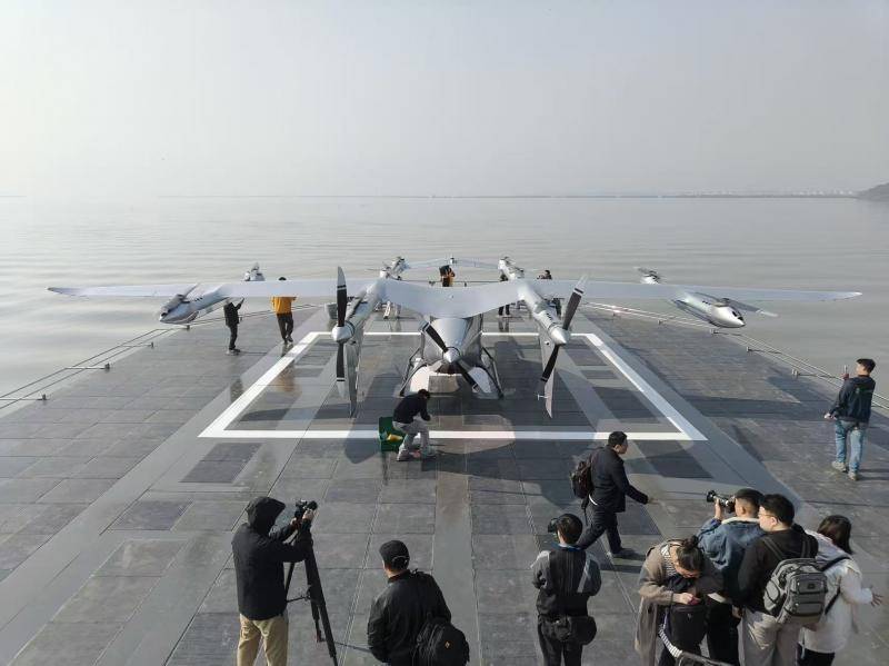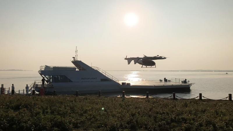 11月22日下昼,在昆山淀山湖,“海空一体”决策初次公开演示,2吨级eVTOL(电动垂直起降飞翔器)航空器从零碳水上机场升起。